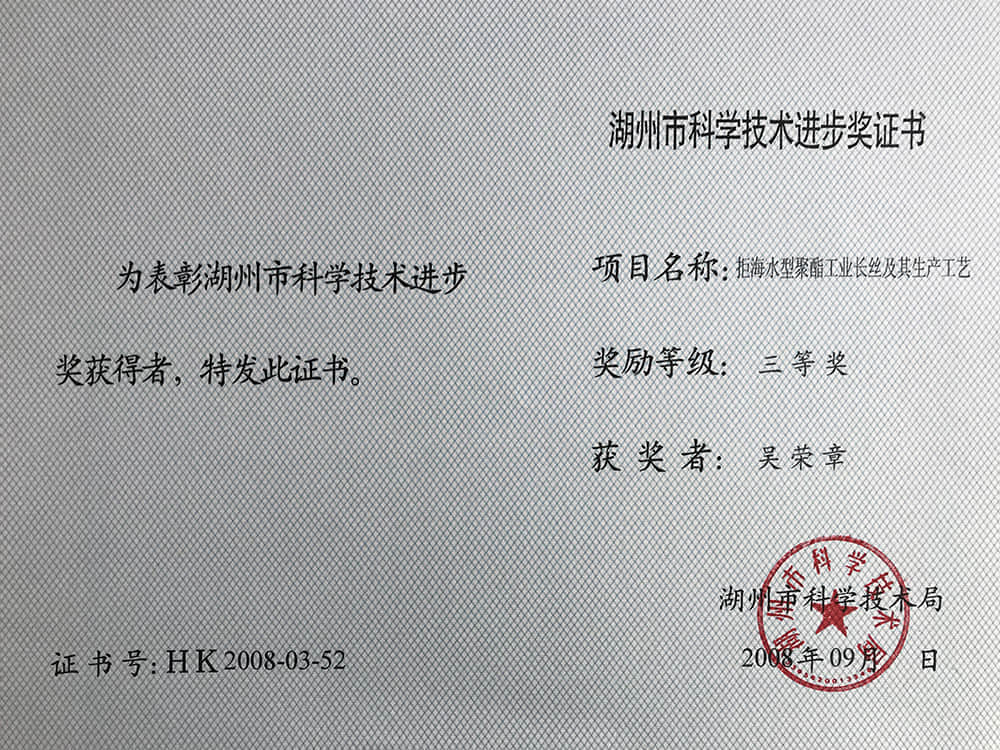 2008湖州市科技進(jìn)步獎三等獎-吳榮章