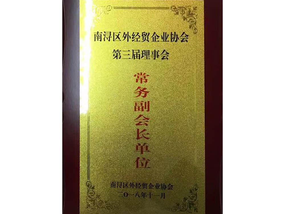 南潯區(qū)外經(jīng)貿(mào)企業(yè)協(xié)會第三屆理事會常務(wù)副會長單位(2018.11)